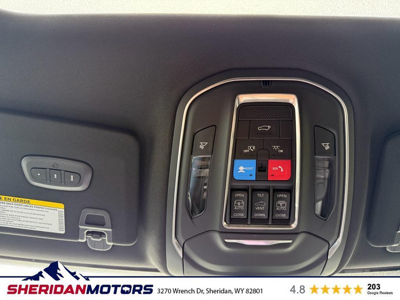 Black Appearance Package: 265/50R20 A/S Performance Tires; 20" X 8.5" Gloss Black Painted Aluminum Wheels; Gloss Black Exterior Accents. Luxury Tech Group II: Power Tilt/telescope Steering Column; Integrated Off-Road Camera; Surround View Camera System; Rain Sensitive Windshield Wipers; ParkSense Front/rear Park Assist with Stop; Front/rear Doors and Liftgate with Passive Entry; Wireless Charging Pad; Rear Back-Up Camera Washer; Ventilated Front Seats; Auto Dim Exterior Driver Mirror; Capri Leatherette with Axis II Seats; 2nd-Row Manual Window Shades; Intersection Collision Assist System; Rearview Autodim Digital Display Mirror; Memory Steering Column. Quick Order Package 23E. Dual-Pane Panoramic Sunroof. Diamond Black Crystal PC. **Equipment listed is based on original vehicle build and subject to change. Please confirm the accuracy of the included equipment by calling the dealer prior to purchase.**
