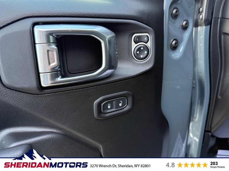 This mid-size suv's Forward Collision Warning feature alerts drivers to potential front-end collisions. It comes equipped with Android Auto for seamless smartphone integration on the road. It offers Apple CarPlay for seamless connectivity. This model keeps you comfortable with Auto Climate. An off-road package is installed on the vehicle so you are ready for your four-wheeling best. This vehicle has automated speed control that adjusts to maintain a safe following distance, enhancing highway driving convenience. Protect this Jeep Wrangler from unwanted accidents with a cutting edge backup camera system. Keep your hands warm all winter with a heated steering wheel in this vehicle . Bluetooth technology is built into the vehicle, keeping your hands on the steering wheel and your focus on the road. This 2025 Jeep Wrangler has four wheel drive capabilities. The Jeep Wrangler emanates grace with its stylish gray exterior. Maintaining a stable interior temperature in this mid-size suv is easy with the climate control system.
