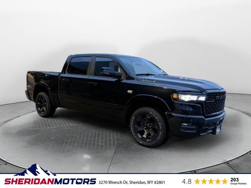 Experience rugged capability and refined comfort in this 2026 Ram 1500 Big Horn 4WD, powered by a potent 5.7L V8 gasoline engine and ready for Sheridan, WY roads and trails. This Ram 1500 Big Horn combines strong towing performance and confident four-wheel drive handling with upscale interior touches and smart tech features that keep you connected and in control every mile of the journey. This truck comes loaded with Remote Start for cold Wyoming mornings, seamless Apple CarPlay integration, and a Back-Up Camera for safer parking and hitching. Built-in Navigation helps you conquer long hauls and unfamiliar routes, while XM Radio provides endless entertainment on the go. Thoughtful creature comforts and durable materials make this Big Horn a practical daily driver and a dependable weekend workhorse. You'll appreciate aggressive capability without sacrificing efficiency or style ? bold exterior cues, roomy crew cab space, and a bed designed for heavy-duty hauling. Whether you're towing equipment, exploring off-pavement access points, or commuting through Sheridan, this Ram 1500 delivers a confident ride with modern convenience features. Priced to move, this 2026 Ram 1500 Big Horn is being offered at the best price in the area ? exceptional value for a V8-powered 4WD truck with premium amenities. Stop settling for less; contact us to schedule a test drive and experience Sheridan's top Ram 1500 deal today.