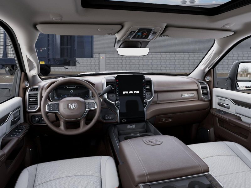 Cold Weather Group: Engine Block Heater; MOPAR Winter Front Grille Cover. Quick Order Package 24H Laramie. Max Tow Package. Laramie Level 2 Plus Equipment Group: Google Android Auto; SiriusXM Radio Service; Power Adjustable Pedals with Memory; For Details Visit DriveUconnect.com; For More Info. Call 800-643-2112; Integrated Voice Command with Bluetooth; Emergency Vehicle Alert System (EVAS); Power Deployable Running Boards; Auto Power-Folding Mirrors; Drowsy Driver Detection; Mirror Running Lights; MOPAR Deployable Bed Step; Alexa Built-In; Apple CarPlay; Power-Adjustable Convex Aux Mirrors; Active Lane Management System; Forward and Reverse Utility Lights; Disassociated Touchscreen Display; Remote Tailgate Release; 17 Speaker Harman/kardon Premium Sound; 2nd Row in Floor Storage Bins; Center Stop Lamp with Cargo View Camera; Rain Sensitive Windshield Wipers; LED Bed Lighting; Connectivity - US/Canada; Traffic Sign Recognition; GPS Navigation; 4G LTE Wi-Fi Hot Spot; Adaptive Steering System; GPS Antenna Input; Exterior Mirrors with Heating Element; Auto Dimming Exterior Mirrors; SiriusXM with 360L; Global Telematics Box Module; Connected Travel and Traffic Services; Foam Bottle Insert (door Trim Panel); Off-Road Information Pages; Selectable Tire Fill Alert; Trailer Tow Pages; Leather Trimmed Bucket Seats; HD Radio; 14.4" Touchscreen Display; Power Heat Fold Memory Telescopic Mirrors; Exterior Mirrors with Supplemental Signals; Exterior Mirrors Courtesy Lamps; Uconnect 5 Nav with 14.4" Display; MOPAR Spray in Bedliner; Auto High Beam Headlamp Control; Chrome Exterior Mirrors; Exterior Mirrors with Memory; Power Adjust Mirrors; Power Telescoping Mirrors; Auto Dimming Exterior Passenger Mirror; Auto Adjust in Reverse Exterior Mirrors. Dual Rear Wheels: Clearance Lamps; LT235/80R17E BSW All Season Tires; 17" Steel Spare Wheel; Box and Rear Fender Clearance Lamps; Center Hub; 6000# Front Axle with Hub Extension; 17" X 6.0" Polished Aluminum Wheels; Nexen Brand Tires; 14. 000 Lb GVWR. Auto Level Rear Air Suspension. on Board Power System - 2.4KW. Power Sunroof. Power Deployable Running Boards. 5th Wheel/gooseneck Towing Prep Group. Leather Trimmed Bucket Seats. Center Stop Lamp with Cargo View Camera. MyFlexCare Service Diesel. 50 Gallon Fuel Tank. Diamond Black Crystal PC. MOPAR Front and Rear Rubber Floor Mats. Clearance Lamps. Transfer Case Skid Plate Shield. **Equipment listed is based on original vehicle build and subject to change. Please confirm the accuracy of the included equipment by calling the dealer prior to purchase.**