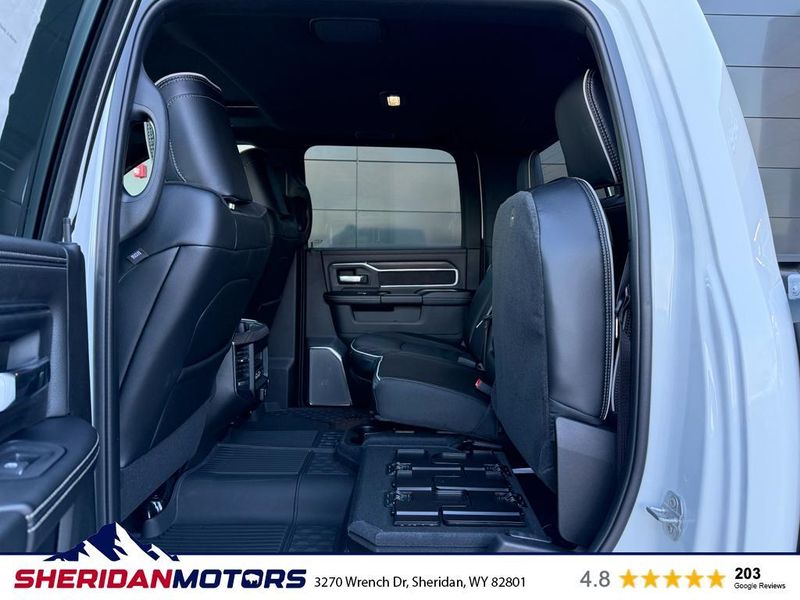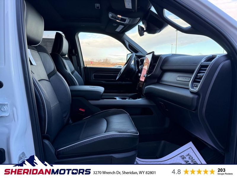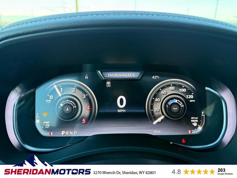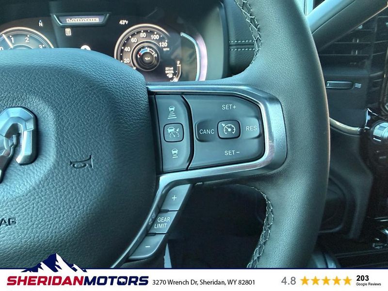 Cold Weather Group: Engine Block Heater; MOPAR Winter Front Grille Cover. Quick Order Package 24H Laramie. Max Tow Package: Auto Level Rear Air Suspension; 5th Wheel/gooseneck Towing Prep Group. Laramie Level 2 Plus Equipment Group: Google Android Auto; SiriusXM Radio Service; Power Adjustable Pedals with Memory; For Details Visit DriveUconnect.com; For More Info. Call 800-643-2112; Integrated Voice Command with Bluetooth; Emergency Vehicle Alert System (EVAS); Power Deployable Running Boards; Auto Power-Folding Mirrors; Drowsy Driver Detection; Mirror Running Lights; MOPAR Deployable Bed Step; Alexa Built-In; Apple CarPlay; Power-Adjustable Convex Aux Mirrors; Active Lane Management System; Forward and Reverse Utility Lights; Disassociated Touchscreen Display; Remote Tailgate Release; 17 Speaker Harman/kardon Premium Sound; 2nd Row in Floor Storage Bins; Center Stop Lamp with Cargo View Camera; Rain Sensitive Windshield Wipers; LED Bed Lighting; Connectivity - US/Canada; Traffic Sign Recognition; GPS Navigation; 4G LTE Wi-Fi Hot Spot; Adaptive Steering System; GPS Antenna Input; Exterior Mirrors with Heating Element; Auto Dimming Exterior Mirrors; SiriusXM with 360L; Global Telematics Box Module; Connected Travel and Traffic Services; Foam Bottle Insert (door Trim Panel); Off-Road Information Pages; Selectable Tire Fill Alert; Trailer Tow Pages; Leather Trimmed Bucket Seats; HD Radio; 14.4" Touchscreen Display; Power Heat Fold Memory Telescopic Mirrors; Exterior Mirrors with Supplemental Signals; Exterior Mirrors Courtesy Lamps; Uconnect 5 Nav with 14.4" Display; MOPAR Spray in Bedliner; Auto High Beam Headlamp Control; Chrome Exterior Mirrors; Exterior Mirrors with Memory; Power Adjust Mirrors; Power Telescoping Mirrors; Auto Dimming Exterior Passenger Mirror; Auto Adjust in Reverse Exterior Mirrors. Dual Rear Wheels: Clearance Lamps; LT235/80R17E BSW All Season Tires; 17" Steel Spare Wheel; Box and Rear Fender Clearance Lamps; Center Hub; 6000# Front Axle with Hub Extension; 17" X 6.0" Polished Aluminum Wheels; Nexen Brand Tires; 14. 000 Lb GVWR. Auto Level Rear Air Suspension. Power Sunroof. Power Deployable Running Boards. 5th Wheel/gooseneck Towing Prep Group. Leather Trimmed Bucket Seats. Center Stop Lamp with Cargo View Camera. MyFlexCare Service Diesel. 50 Gallon Fuel Tank. MOPAR Front and Rear Rubber Floor Mats. Clearance Lamps. Transfer Case Skid Plate Shield. **Equipment listed is based on original vehicle build and subject to change. Please confirm the accuracy of the included equipment by calling the dealer prior to purchase.**