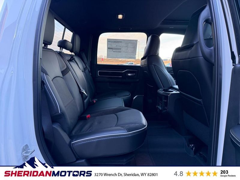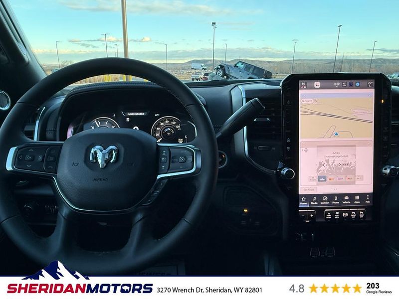 The vehicle has automated speed control that adjusts to maintain a safe following distance, enhancing highway driving convenience. Never get into a cold vehicle again with the remote start feature on this 1 ton pickup. The leather seats in it are a must for buyers looking for comfort, durability, and style. This 1 ton pickup offers Android Auto for seamless smartphone integration. The vehicle offers Apple CarPlay for seamless connectivity. Enjoy your music even more with the premium sound system in the vehicle. You'll never again be lost in a crowded city or a country region with the navigation system on this 1 ton pickup. See what's behind you with the back up camera on it. This Ram 3500 features a hands-free Bluetooth phone system. An off-road package is equipped on this unit. This model's Forward Collision Warning feature alerts drivers to potential front-end collisions. Keep your hands warm all winter with a heated steering wheel in the Ram 3500 .