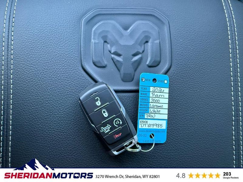 Discover rugged capability and refined comfort with this 2026 Ram 3500 Laramie 4WD Dual Rear Wheel, now available in Sheridan, WY. Powered by a proven 6-cylinder 6.7L diesel engine, this heavy-duty pickup delivers exceptional torque and towing confidence for demanding jobs and long hauls. The dual rear wheels enhance stability and payload capacity, while the 4WD system ensures traction across Wyoming's varied terrain. Inside, enjoy premium leather seats and a heated steering wheel for comfort in chilly mornings. The Off-Road Package adds upgraded suspension and protective features for confident exploration off the beaten path. A premium sound system turns commutes into first-class experiences, and the back-up camera makes maneuvering this capable rig effortless at job sites and tight parking spaces. This Ram 3500 Laramie combines professional-grade performance with upscale amenities, making it ideal for contractors, ranchers, and drivers who demand both power and luxury. Located in Sheridan, WY, this truck is offered at the best price in the area ? competitively priced to move quickly. Don't miss the chance to own a top-tier diesel pickup that balances capability and comfort. Contact us today to schedule a test drive and see why this 2026 Ram 3500 Laramie is the smart choice for heavy-duty performance.