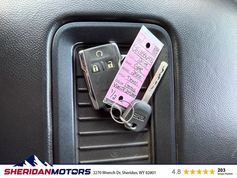 2018 GMC Sierra 2500 Denali 4WD ? Powerful 6.6L V8 Diesel, Located in Sheridan, WY. This rugged, refined pickup pairs heavy-duty capability with Denali luxury for drivers who demand performance and comfort. The stout 6.6L V8 diesel delivers impressive towing and torque, while four-wheel drive provides confident traction on Wyoming roads and trails. Inside, premium leather seats and a thoughtfully appointed cabin elevate every mile. Technology features include Satellite Radio and XM Radio for entertainment on long hauls, plus safety and convenience upgrades like Rear Parking Sensors and Lane Departure Warning to help prevent fender benders and improve awareness. The Denali trim adds upscale touches and advanced engineering, making this GMC Sierra ideal for work, recreation, or daily driving. This GMC Sierra 2500 is competitively priced ? the best price in the Sheridan, WY area ? giving you exceptional value for a diesel Denali with these options. Whether you're towing equipment, navigating winter conditions, or enjoying a comfortable commute, this truck is built to perform. Schedule a test drive in Sheridan today and experience the diesel power, 4WD capability, and premium Denali amenities for yourself. Don't miss your chance to own a top-tier 2018 GMC Sierra 2500 Denali at the best local price.