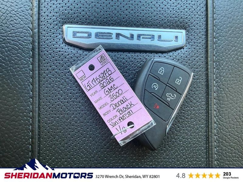 2025 GMC Sierra 3500 Denali ? 4WD, V8 6.6L Diesel, 9,891 miles ? Sheridan, WY Looking for a premium heavy-duty truck at the best price? This 2025 GMC Sierra 3500 Denali in Sheridan, WY delivers luxury, capability, and low mileage ? only 9,891 miles. Powered by a V8 6.6L Diesel and equipped with 4WD, this GMC Sierra 3500 is built for towing, worksite performance, and confident driving in Wyoming conditions. Top features include the Off-Road Package for rugged terrain, BOSE stereo for premium sound, Lane Departure Warning and Adaptive Cruise Control for enhanced safety, and Steering Wheel Audio Controls for convenience. The Denali trim adds refined interior finishes, advanced technology, and comfort for long hauls or daily driving. This GMC Sierra 3500's low mileage, diesel V8 powertrain, and comprehensive feature set make it a standout value. Priced competitively ? the best price in the area ? it's ideal for buyers seeking a capable, reliable heavy-duty truck with luxury touches. Located in Sheridan, WY, this 2025 GMC Sierra 3500 Denali is ready for a test drive. Contact us to schedule an appointment, request a vehicle history report, or learn more about financing and warranty options. Don't miss this low-mileage diesel Denali at the best price.