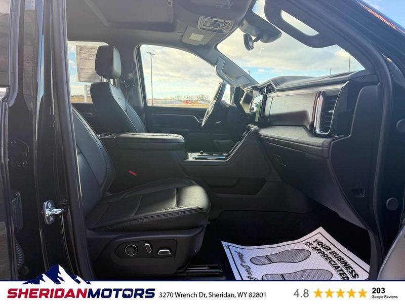 Preferred Equipment Group 5SA: LED Cargo Area Lighting; Trailer Side Blind Zone Alert; SiriusXM with 360L Trial Subscription; Remote Vehicle Starter System; Power Sliding Rear Window with Defogger; Safety Alert Seat; Ultrasonic Front and Rear Park Assist; Trailer Camera Provisions; Electric Rear-Window Defogger; Floor-Mounted Center Console; Unauthorized Entry Theft-Deterrent System; Bed View Camera with Two Trailer Camera Provisions; Front Rain-Sensing Wipers; Sierra HD Pro Safety; Wireless Phone Projection; 2 USB Ports; Rear Cross Traffic Alert; 120-Volt Instrument Panel Power Outlet; 2 Charge/data USB Ports Inside Center Console; LED Smoked Amber Roof Marker Lamps; Heated Driver and Front Outboard Passenger Seats; Wireless Charging; X31 Off-Road Package; Steering Wheel Audio Controls; 2 Charge-Only Rear USB Ports; Universal Home Remote; 120-Volt Bed Mounted Power Outlet; Heated 2nd Row Outboard Seats; Power Front Windows with Passenger Express Up/down; Bose Premium 7-Speaker Sound System; 2-Speed Active Transfer Case; Deep-Tinted Glass; Spray-On Pickup Bedliner with GMC Logo; HD Surround Vision; Ventilated Driver and Front Passenger Seats; Manual Tilt-Wheel/telescoping Steering Column; Keyless Open and Start; ProGrade Trailering System; Signature Chrome Denali Grille; Push Button Start; Rear Wheelhouse Liners; Polished Exhaust Tip. Denali Reserve Package: Power Sunroof. Technology Package: Multicolor 15" Diagonal Head-Up Display; Auto-Dimming Inside Rearview Mirror with Camera. Power-Retractable Assist Steps. Power Sunroof. Gooseneck/5th Wheel Prep Package. Onyx Black. **Equipment listed is based on original vehicle build and subject to change. Please confirm the accuracy of the included equipment by calling the dealer prior to purchase.**