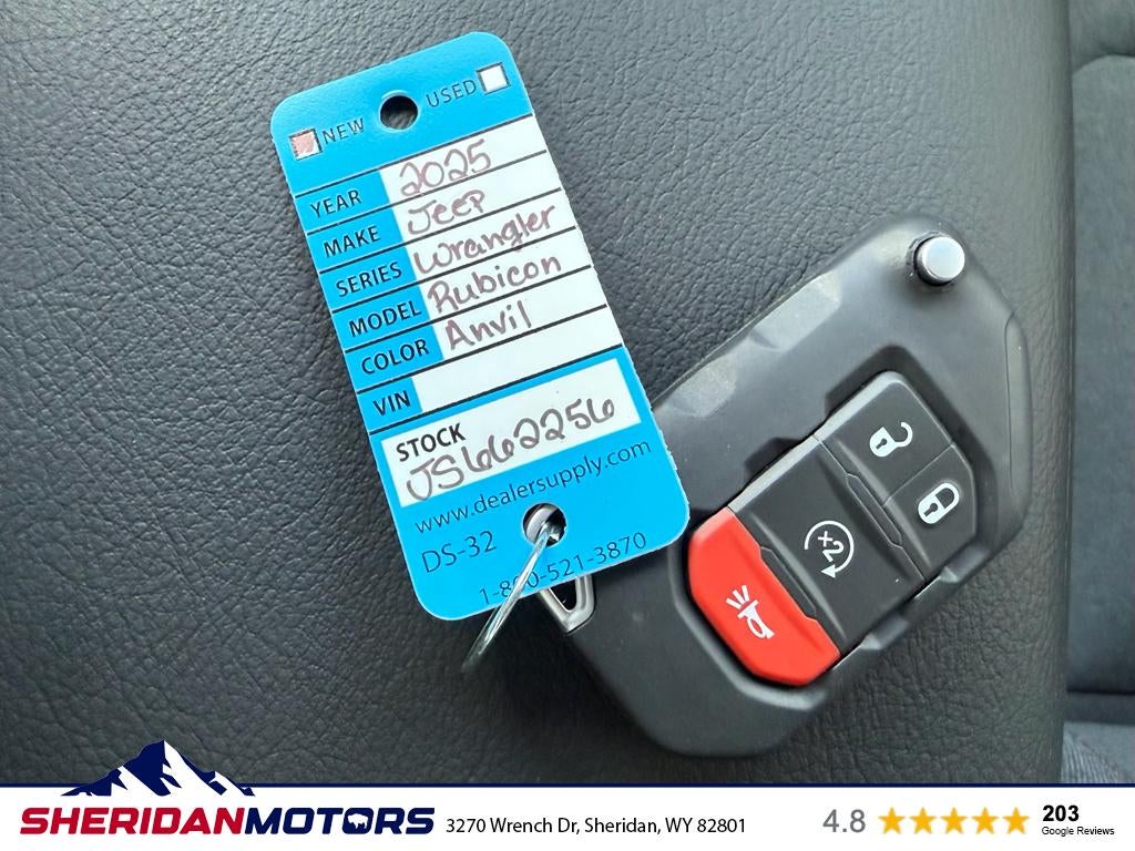 Adventure awaits with this 2025 Jeep Wrangler Rubicon 4WD, now available in Sheridan, WY—priced to sell and offering the best deal in the area. Powered by a robust V6 3.6L gasoline engine, this Rubicon blends legendary off-road capability with modern comfort and technology. Whether you're tackling rocky trails or cruising Wyoming highways, the dependable 4WD system, high-clearance suspension, and rugged Rubicon-specific features deliver confidence and control. Inside, tech-forward amenities keep you connected and comfortable. Apple CarPlay and Android Auto provide seamless smartphone integration, while Hands Free Bluetooth® lets you manage calls and music without taking your hands off the wheel. The Back-Up Camera adds safety and convenience for parking and hitching trailers. Adaptive Cruise Control enhances long-distance driving by maintaining a safe following distance, reducing fatigue on highway stretches. This Jeep Wrangler Rubicon is ideal for outdoor enthusiasts who demand performance, versatility, and modern conveniences in one iconic package. With its powerful V6, durable build, and advanced driver-assist features, it’s ready for weekend escapes, daily commutes, and everything in between. Located in Sheridan, WY and competitively priced as the best offer around, this 2025 Jeep Wrangler Rubicon 4WD won’t last long. Schedule a test drive today and experience the capability and value for yourself.