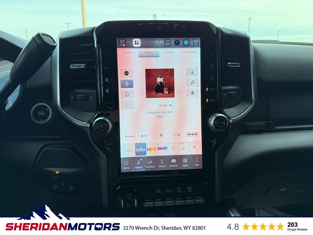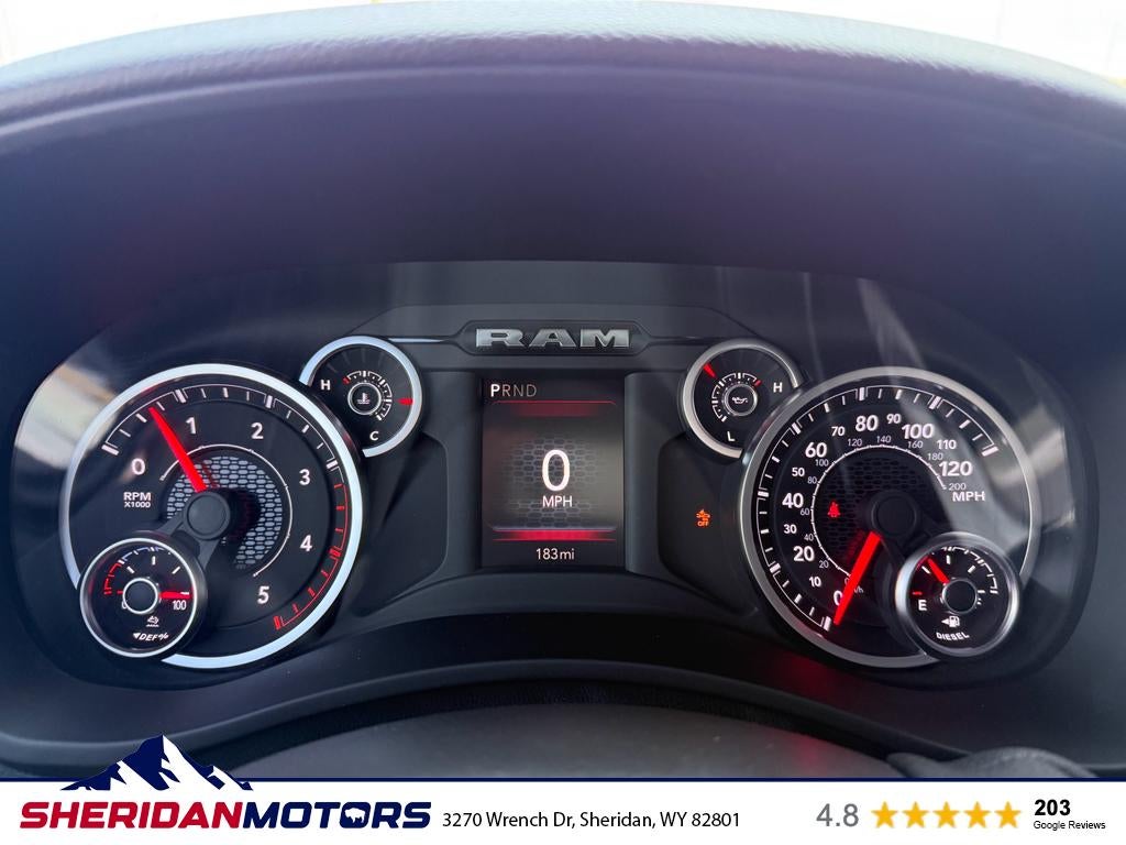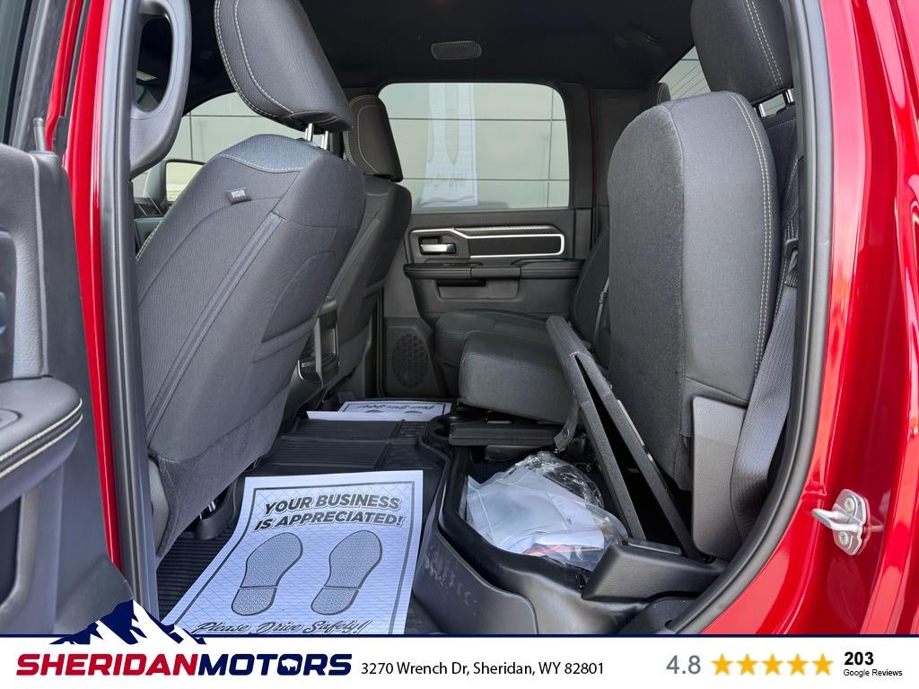 Quick Order Package 24Z Big Horn. Big Horn Level 1 Plus Equipment Group: Google Android Auto; SiriusXM Radio Service; For Details Visit DriveUconnect.com; For More Info. Call 800-643-2112; Integrated Voice Command with Bluetooth®; Emergency Vehicle Alert System (EVAS); Glove Box Lamp; 12" Touchscreen Display; Auto Power-Folding Mirrors; Footwell Courtesy Lamp; Mirror Running Lights; MOPAR Deployable Bed Step; Alexa Built-In; Apple CarPlay; Power-Adjustable Convex Aux Mirrors; Forward and Reverse Utility Lights; Locking Lower Glove Box; Remote Start System; 9 Alpine Speakers with Subwoofer; Dual Glove Boxes; 2nd Row in Floor Storage Bins; Rear View Auto Dim Mirror; Rear Dome with On/off Switch Lamp; LED Bed Lighting; Connectivity - US/Canada; GPS Navigation; 4G LTE Wi-Fi Hot Spot; GPS Antenna Input; Exterior Mirrors with Heating Element; SiriusXM with 360L; Global Telematics Box Module; Connected Travel and Traffic Services; Foam Bottle Insert (door Trim Panel); Black Exterior Mirrors; Big Horn Instrument Panel Badge; Off-Road Information Pages; Selectable Tire Fill Alert; Trailer Tow Pages; HD Radio; Uconnect 5 Navigation with 12.0" Display Radio; Power Heated Fold Telescopic Mirrors; Exterior Mirrors with Supplemental Signals; Steering Wheel Mounted Audio Controls; Exterior Mirrors Courtesy Lamps; Air Conditioning ATC with Dual Zone Control; MOPAR Spray in Bedliner; Power Adjust Mirrors; Luxury Steering Wheel; Power Telescoping Mirrors. Cold Weather Group: Engine Block Heater; MOPAR Winter Front Grille Cover. Heated Seats and Wheel Group: Heated Front Seats; Heated Steering Wheel. Chrome Flat Wheel-To-wheel Side Steps. 5th Wheel/gooseneck Towing Prep Group. LT275/70R18E OWL On/off Road Tires. Premium Cloth Bucket Seats. 50 Gallon Fuel Tank. Remote Start System. Instrument Panel Mounted Auxiliary Switches. Molten Red Pearlcoat. MOPAR Front and Rear Rubber Floor Mats. Rear Wheelhouse Liners. Security Alarm. Power 2-Way Driver Lumbar Adjust. Transfer Case Skid Plate Shield. **Equipment listed is based on original vehicle build and subject to change. Please confirm the accuracy of the included equipment by calling the dealer prior to purchase.**
