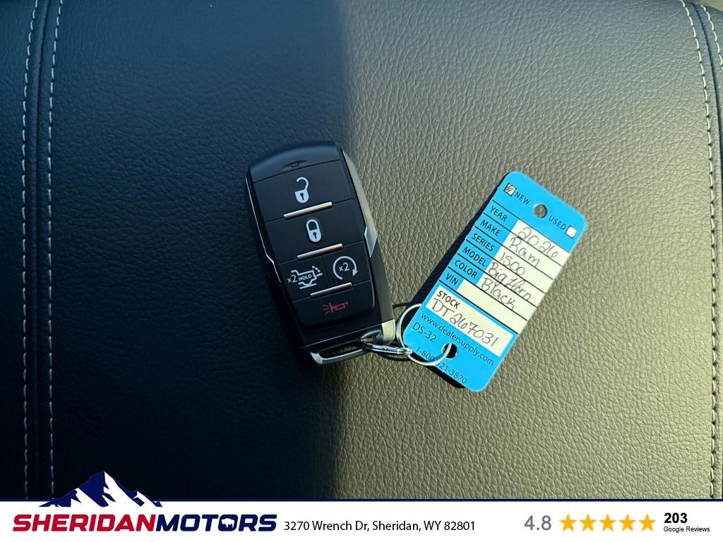Experience rugged capability and refined comfort in this 2026 Ram 1500 Big Horn 4WD, powered by a potent 5.7L V8 gasoline engine and ready for Sheridan, WY roads and trails. This Ram 1500 Big Horn combines strong towing performance and confident four-wheel drive handling with upscale interior touches and smart tech features that keep you connected and in control every mile of the journey. This truck comes loaded with Remote Start for cold Wyoming mornings, seamless Apple CarPlay integration, and a Back-Up Camera for safer parking and hitching. Built-in Navigation helps you conquer long hauls and unfamiliar routes, while XM Radio provides endless entertainment on the go. Thoughtful creature comforts and durable materials make this Big Horn a practical daily driver and a dependable weekend workhorse. You'll appreciate aggressive capability without sacrificing efficiency or style — bold exterior cues, roomy crew cab space, and a bed designed for heavy-duty hauling. Whether you're towing equipment, exploring off-pavement access points, or commuting through Sheridan, this Ram 1500 delivers a confident ride with modern convenience features. Priced to move, this 2026 Ram 1500 Big Horn is being offered at the best price in the area — exceptional value for a V8-powered 4WD truck with premium amenities. Stop settling for less; contact us to schedule a test drive and experience Sheridan's top Ram 1500 deal today.