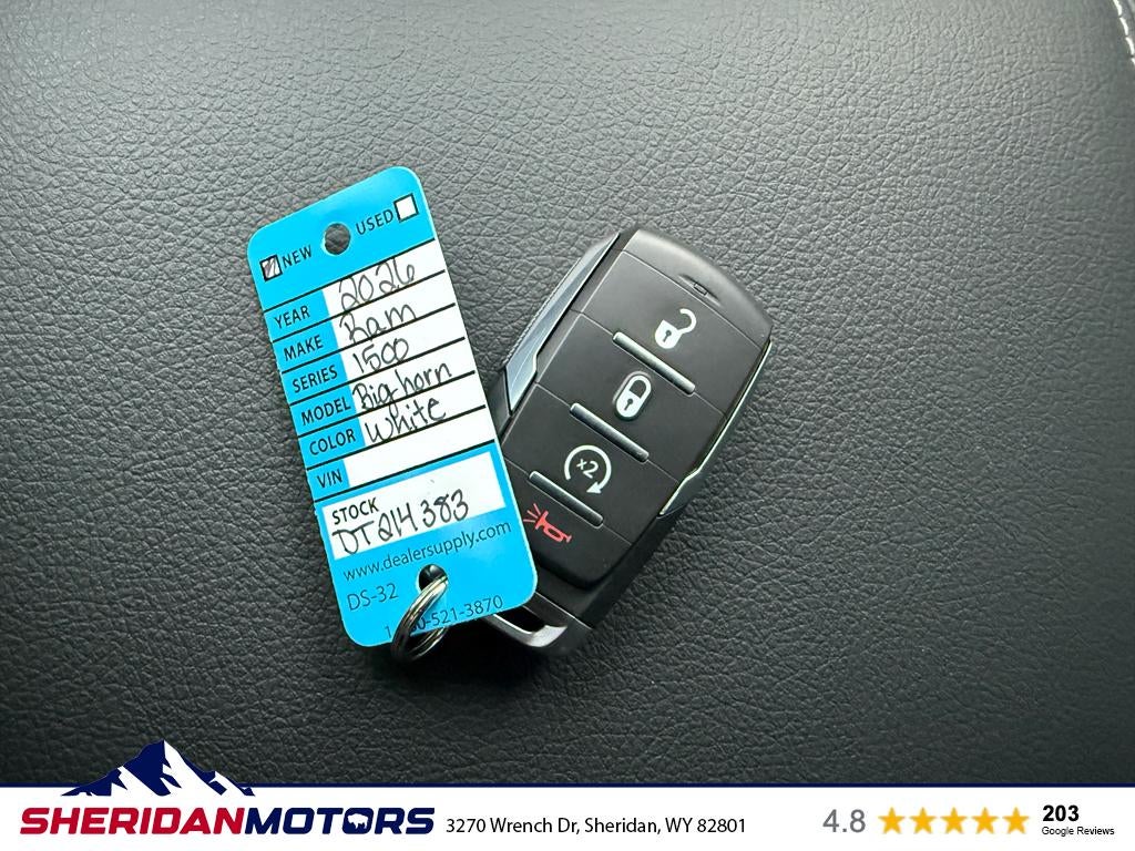 Quick Order Package 21Z Big Horn. Big Horn Level 1 Equipment Group: SiriusXM Radio Service; Rear Window Defroster; Rear View Auto Dim Mirror; Power Adjustable Pedals; Leather Wrapped Steering Wheel; Rear Power Sliding Window; Rear Dome with On/off Switch Lamp; Glove Box Lamp; Auto Power-Folding Mirrors; Exterior Mirrors with Heating Element; Auto Dim Exterior Driver Mirror; Heated Front Seats; Heated Steering Wheel; Black Exterior Mirrors; Black Premium Power Mirrors; SiriusXM Satellite Radio; 400W Inverter; Deluxe Cloth Bucket Seats; Exterior Mirrors with Supplemental Signals; Steering Wheel Mounted Audio Controls; Exterior Mirrors Courtesy Lamps; Body Color Fender Flares; 115V Auxiliary Power Outlet; Universal Garage Door Opener; 2nd Row in Floor Storage Bins; Convex Wide-Angle Exterior Mirror Insert; Sun Visors with Illuminated Vanity Mirrors. Protection Group: Steering Gear Skid Plate; Tow Hooks; Transfer Case Skid Plate; Fuel Tank Skid Plate. 9 Amplified Speakers with Subwoofer. Trailer Brake Control. MyFlexCare Service Plan. MOPAR Front and Rear Rubber Floor Mats. **Equipment listed is based on original vehicle build and subject to change. Please confirm the accuracy of the included equipment by calling the dealer prior to purchase.**