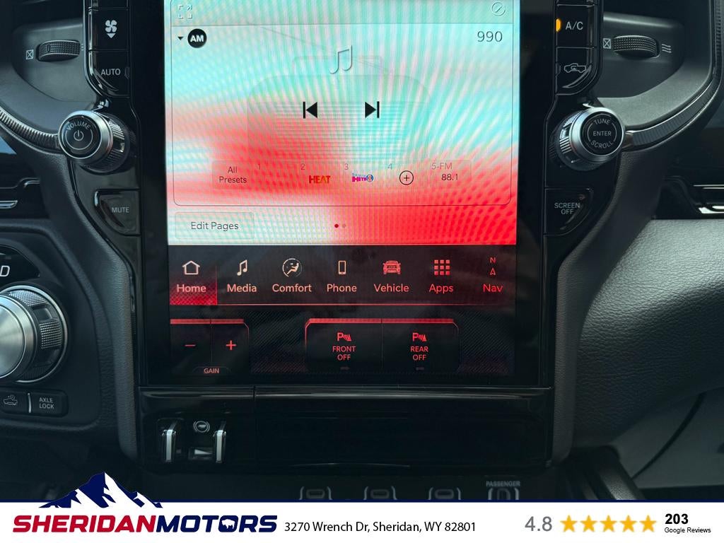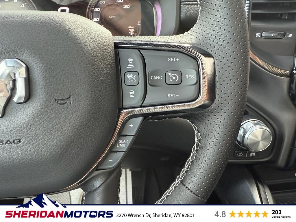 This vehicle is pure luxury with a heated steering wheel. It offers Apple CarPlay for seamless connectivity. Start this model from inside with remote start. This 2026 Ram 1500 has a premium sound system installed. Bluetooth® technology is built into this 2026 Ram 1500 , keeping your hands on the steering wheel and your focus on the road. The Ram 1500 is equipped with the latest generation of XM/Sirius Radio. An off-road package is installed on this Ram 1500 so you are ready for your four-wheeling best. Protect this vehicle from unwanted accidents with a cutting edge backup camera system. This 1/2 ton pickup's Forward Collision Warning feature alerts drivers to potential front-end collisions. This vehicle offers Android Auto for seamless smartphone integration. The leather seats in this model are a must for buyers looking for comfort, durability, and style. The installed navigation system will keep you on the right path.