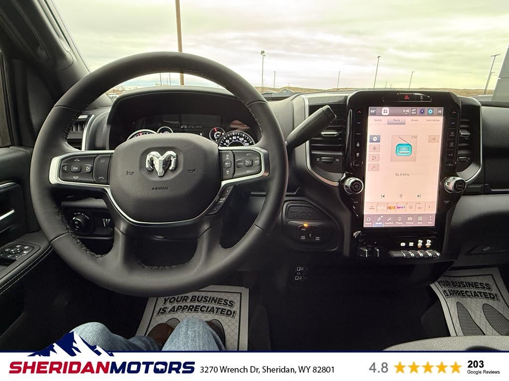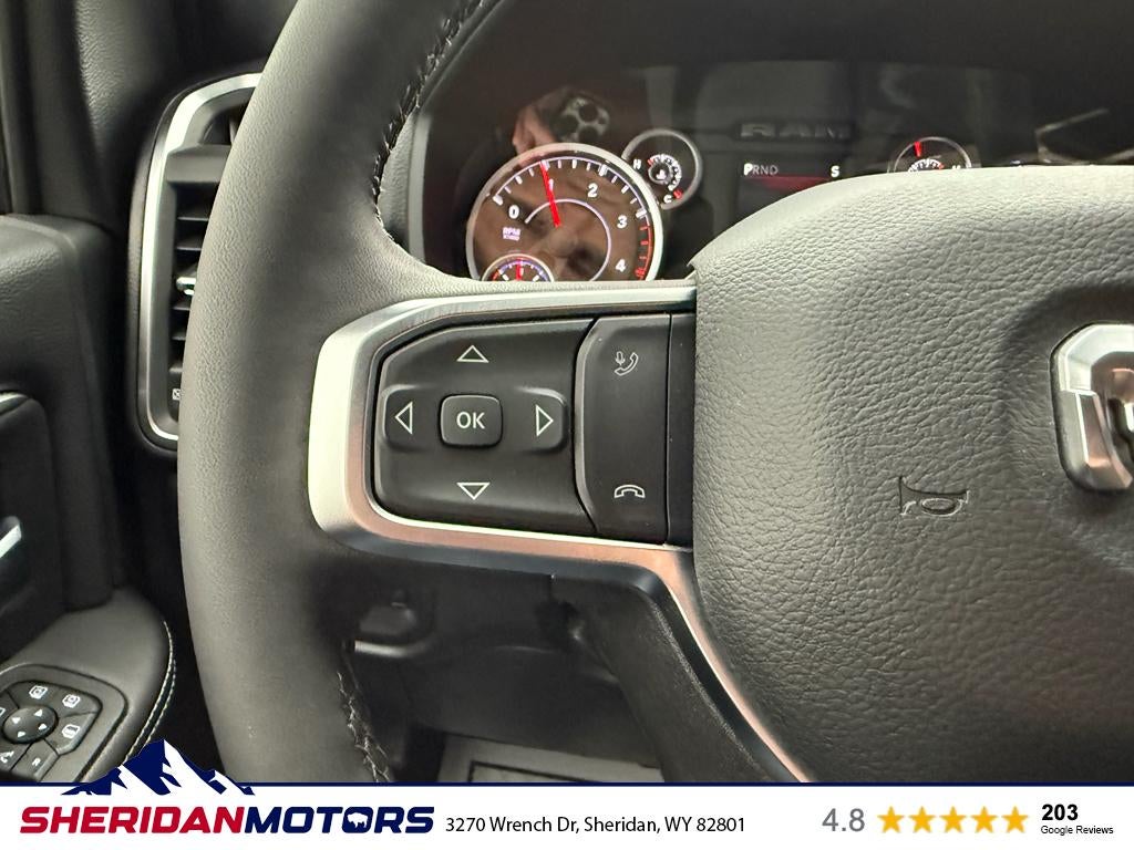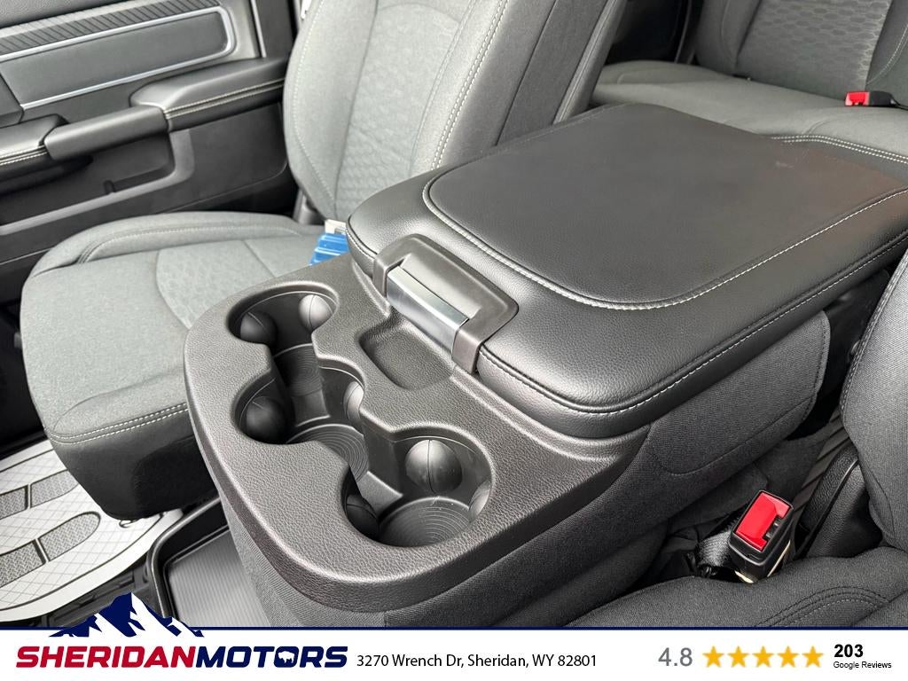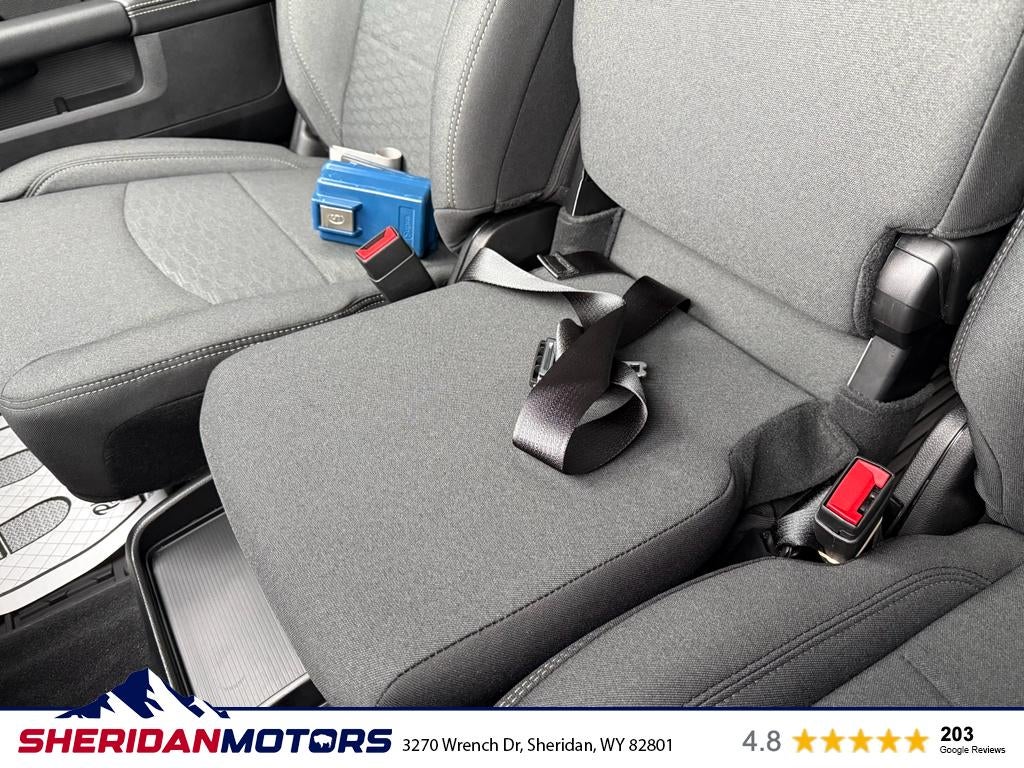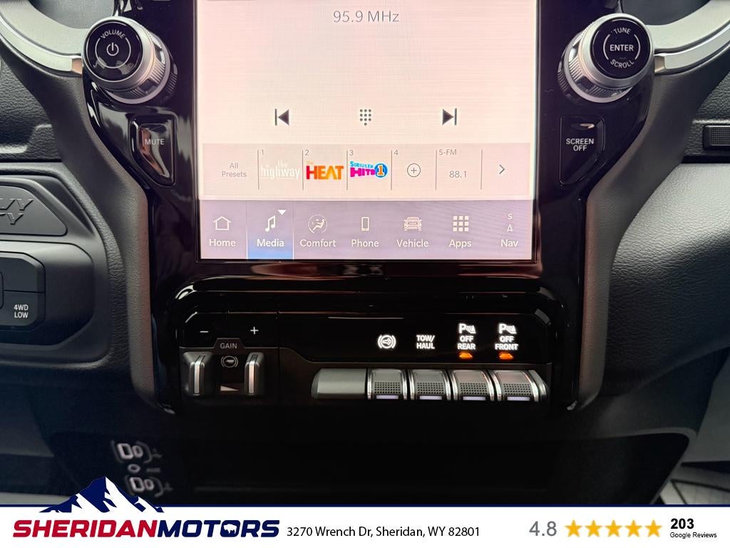 Quick Order Package 24Z Big Horn. Night Edition. Big Horn Level 1 Plus Equipment Group: Google Android Auto; SiriusXM Radio Service; For Details Visit DriveUconnect.com; For More Info. Call 800-643-2112; Integrated Voice Command with Bluetooth®; Emergency Vehicle Alert System (EVAS); 12" Touchscreen Display; Cloth 40/20/40 Premium Bench Seat; Glove Box Lamp; Auto Power-Folding Mirrors; Footwell Courtesy Lamp; Mirror Running Lights; MOPAR Deployable Bed Step; Alexa Built-In; Apple CarPlay; Power-Adjustable Convex Aux Mirrors; Forward and Reverse Utility Lights; Locking Lower Glove Box; Remote Start System; 9 Alpine Speakers with Subwoofer; Disassociated Touchscreen Display; Dual Glove Boxes; 2nd Row in Floor Storage Bins; Rear View Auto Dim Mirror; Rear Dome with On/off Switch Lamp; LED Bed Lighting; Connectivity - US/Canada; GPS Navigation; 4G LTE Wi-Fi Hot Spot; GPS Antenna Input; Exterior Mirrors with Heating Element; SiriusXM with 360L; Global Telematics Box Module; Connected Travel and Traffic Services; Foam Bottle Insert (door Trim Panel); Black Exterior Mirrors; Big Horn Instrument Panel Badge; Off-Road Information Pages; Selectable Tire Fill Alert; Trailer Tow Pages; HD Radio; Uconnect 5 Navigation with 12.0" Display Radio; Power Heated Fold Telescopic Mirrors; Exterior Mirrors with Supplemental Signals; Steering Wheel Mounted Audio Controls; Exterior Mirrors Courtesy Lamps; Air Conditioning ATC with Dual Zone Control; MOPAR Spray in Bedliner; Power Adjust Mirrors; Luxury Steering Wheel; Power Telescoping Mirrors. Quick Order Package 2UZ Big Horn. Cloth 40/20/40 Premium Bench Seat. 50 Gallon Fuel Tank. Remote Start System. MOPAR Front and Rear Rubber Floor Mats. Rear Wheelhouse Liners. Clearance Lamps. Power 2-Way Driver Lumbar Adjust. **Equipment listed is based on original vehicle build and subject to change. Please confirm the accuracy of the included equipment by calling the dealer prior to purchase.**