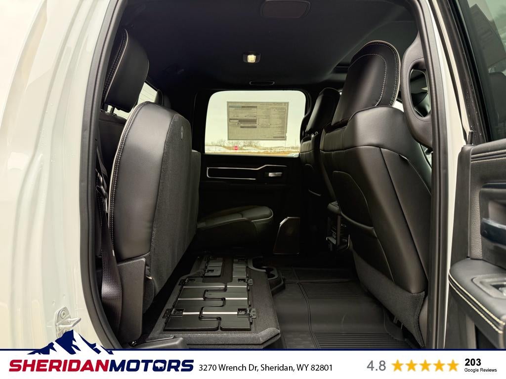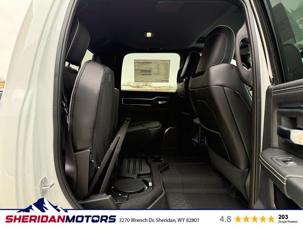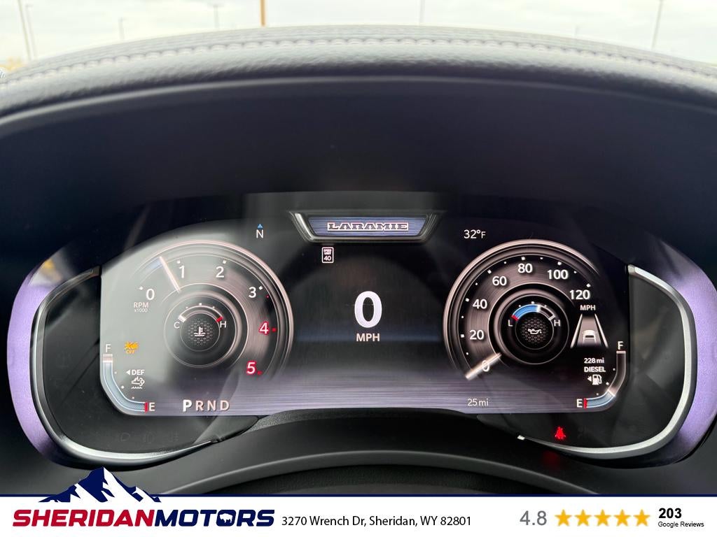 Cold Weather Group: Engine Block Heater; MOPAR Winter Front Grille Cover. Quick Order Package 24H Laramie. Laramie Level 2 Plus Equipment Group: Google Android Auto; SiriusXM Radio Service; Power Adjustable Pedals with Memory; For Details Visit DriveUconnect.com; For More Info. Call 800-643-2112; Integrated Voice Command with Bluetooth®; Emergency Vehicle Alert System (EVAS); Power Deployable Running Boards; Auto Power-Folding Mirrors; Drowsy Driver Detection; Mirror Running Lights; MOPAR Deployable Bed Step; Alexa Built-In; Apple CarPlay; Power-Adjustable Convex Aux Mirrors; Active Lane Management System; Forward and Reverse Utility Lights; Disassociated Touchscreen Display; Remote Tailgate Release; 17 Speaker Harman/kardon Premium Sound; 2nd Row in Floor Storage Bins; Center Stop Lamp with Cargo View Camera; Rain Sensitive Windshield Wipers; LED Bed Lighting; Connectivity - US/Canada; Traffic Sign Recognition; GPS Navigation; 4G LTE Wi-Fi Hot Spot; Adaptive Steering System; GPS Antenna Input; Exterior Mirrors with Heating Element; Auto Dimming Exterior Mirrors; SiriusXM with 360L; Global Telematics Box Module; Connected Travel and Traffic Services; Foam Bottle Insert (door Trim Panel); Off-Road Information Pages; Selectable Tire Fill Alert; Trailer Tow Pages; Leather Trimmed Bucket Seats; HD Radio; 14.4" Touchscreen Display; Power Heat Fold Memory Telescopic Mirrors; Exterior Mirrors with Supplemental Signals; Exterior Mirrors Courtesy Lamps; Uconnect 5 Nav with 14.4" Display; MOPAR Spray in Bedliner; Auto High Beam Headlamp Control; Chrome Exterior Mirrors; Exterior Mirrors with Memory; Power Adjust Mirrors; Power Telescoping Mirrors; Auto Dimming Exterior Passenger Mirror; Auto Adjust in Reverse Exterior Mirrors. 20" X 8.0" Polished Aluminum Wheels. Power Sunroof. Power Deployable Running Boards. Leather Trimmed Bucket Seats. Center Stop Lamp with Cargo View Camera. MyFlexCare Service Diesel. 50 Gallon Fuel Tank. MOPAR Front and Rear Rubber Floor Mats. Transfer Case Skid Plate Shield. **Equipment listed is based on original vehicle build and subject to change. Please confirm the accuracy of the included equipment by calling the dealer prior to purchase.**
