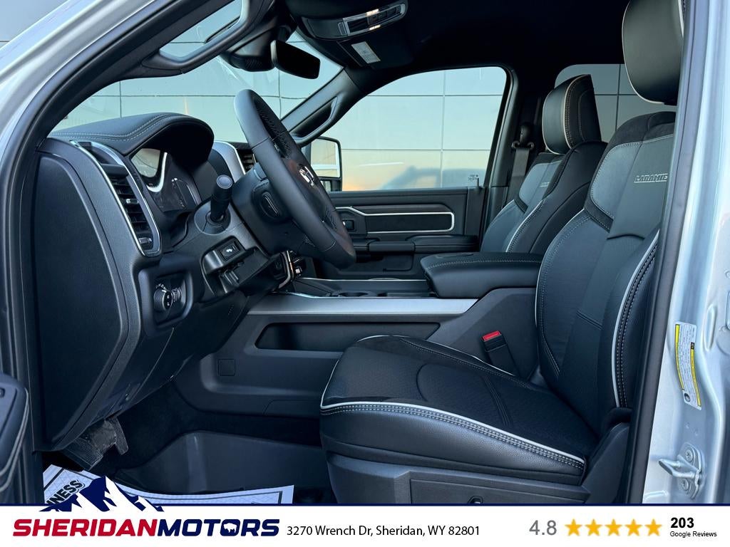 2026 Ram 3500 Laramie 4WD — Sheridan WY’s best-priced heavy-duty diesel truck. Built for work and comfort, this Ram 3500 pairs a torquey 6-cylinder 6.7L Diesel with a rugged 4WD system and Off-Road Package for confident performance on Wyoming trails and job sites. You’ll find premium Laramie features like leather seats, advanced navigation, and smartphone integration with Android Auto for seamless connectivity on every drive. This Ram 3500 Laramie delivers towing capability and durability without sacrificing refinement. Remote start adds convenience in Sheridan’s cold months, while the Off-Road Package includes upgraded suspension and protective components to handle rough terrain. Inside, the cabin is appointed with high-quality leather seating and driver-focused tech: intuitive navigation, media controls, and connectivity that keeps you linked to maps, music, and calls. Priced competitively and advertised as the best price in Sheridan, WY, this Ram 3500 represents exceptional value for buyers seeking a powerful diesel truck with premium amenities. Whether hauling a trailer, navigating backcountry roads, or commuting in comfort, this 2026 Ram 3500 Laramie is a versatile, capable choice. Contact us in Sheridan, WY to schedule a test drive and experience the performance and features firsthand.