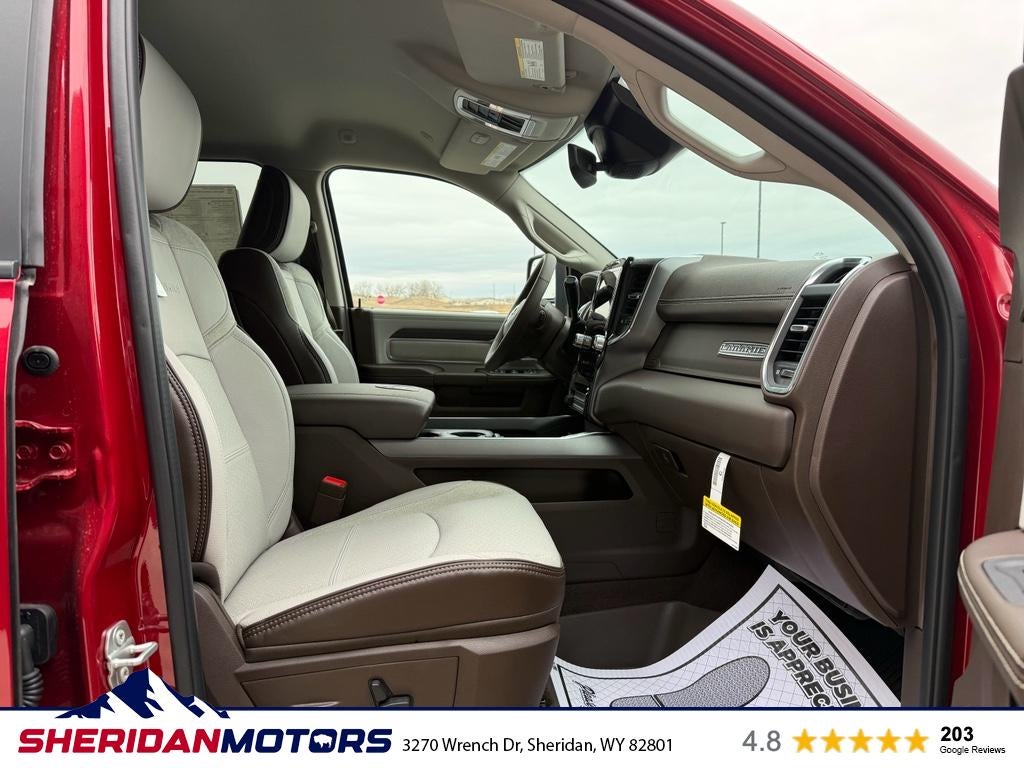 Experience commanding power and refined comfort with this 2026 Ram 3500 Laramie 4WD Dually in Sheridan, WY. Powered by a robust 6-cylinder 6.7L Diesel engine, this heavy-duty pickup delivers exceptional towing capacity, long-haul efficiency, and torque when you need it most. Dual Rear Wheels provide enhanced stability and confidence when hauling heavy loads, while the 4WD system ensures traction across Wyoming's rugged terrain and challenging weather. Inside, the Laramie trims the line between work truck and luxury ride. Enjoy year-round comfort with a heated steering wheel and premium seating materials. Stay connected and entertained with Android Auto integration and an intuitive navigation system that keeps you on course during cross-country trips. Remote start offers convenience and climate control before you even step inside. Advanced safety features, including Forward Collision Warning, help protect you and your cargo on busy highways and rural roads alike. This Ram 3500 Laramie showcases practical versatility: a tough chassis for worksite demands, a refined cabin for family road trips, and modern tech for everyday convenience. Located in Sheridan, WY, this truck is competitively priced and offered at the best price in the area—an outstanding value for buyers seeking power, capability, and comfort. Schedule a test drive today and experience why this 2026 Ram 3500 Laramie sets the standard for heavy-duty performance.
