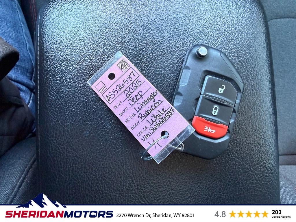 2025 Jeep Wrangler Rubicon — 36,598 miles — Sheridan, WY. Rugged capability meets modern comfort in this 4WD Jeep Wrangler Rubicon, powered by a fuel-efficient 2.0L 4-cylinder gasoline engine. Built for off-road adventures and everyday driving, this Jeep Wrangler delivers legendary performance with refined technology and safety features you can rely on. This Rubicon's interior includes Android Auto for seamless smartphone integration, Hands-Free Bluetooth® for safe calling and audio streaming, and a Back-Up Camera that makes parking and trail maneuvering easier. Cruise with confidence using Adaptive Cruise Control, which maintains a safe following distance on highways and long drives. The vehicle also comes with a CARFAX Clean Report, verifying its clean history and providing peace of mind for your purchase. Located in Sheridan, WY, this Jeep Wrangler Rubicon is priced to move — it currently offers the best price in the area for comparable models. Whether you're exploring Wyoming backcountry or navigating daily commutes, the combination of Rubicon off-road hardware and modern convenience features makes this Jeep Wrangler a standout choice. Schedule a test drive in Sheridan today to experience the capability, comfort, and value this 2025 Jeep Wrangler Rubicon offers. Competitive pricing and a clean CARFAX make it an exceptional buy for drivers seeking true off-road performance with up-to-date tech.